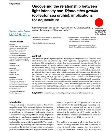 The Aquaculture Department of the Seychelles Fisheries Authority is cu...