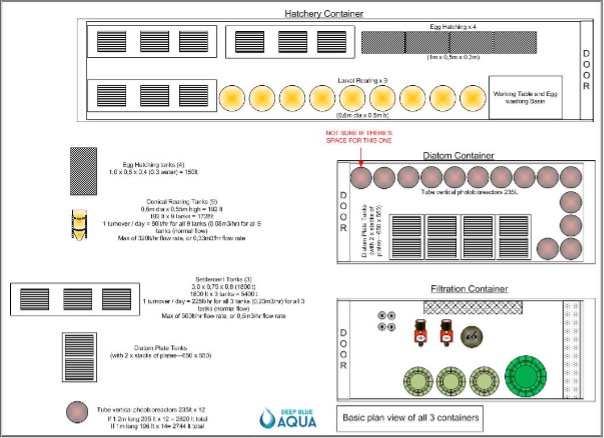 The facility consists of three distinct containers, each serving a crucial role in the hatchery process: