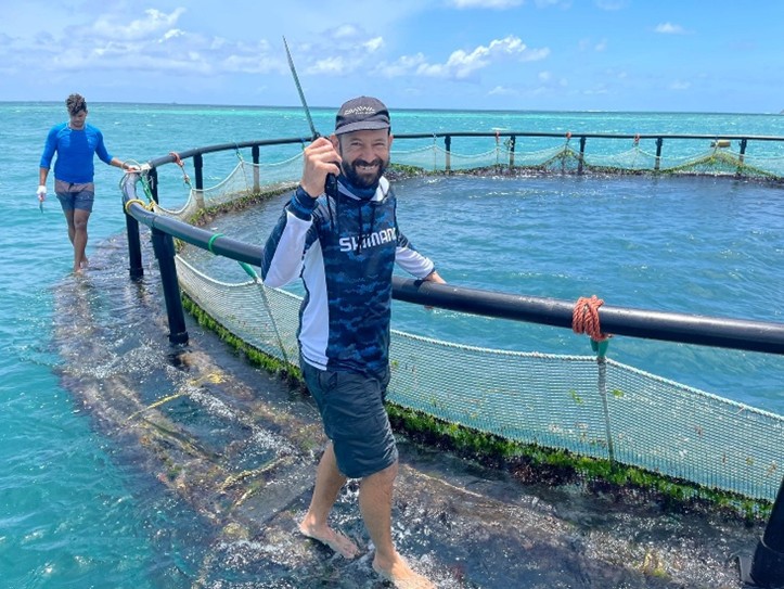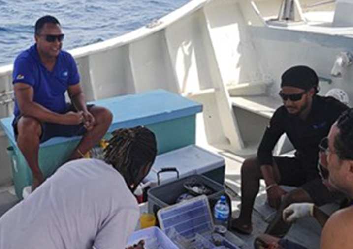 Once everything is ready, the team moves on to on-board diving expeditions. These trips can involve sea cage maintenance, scientific diving, or broodstock collection. The divers often travel to different parts of Seychelles, including remote areas such as Farquhar Atoll and the Amirantes. In these locations, the objective is to collect healthy broodstock of different finfish species and echinoderms that will later be used in aquaculture programs.