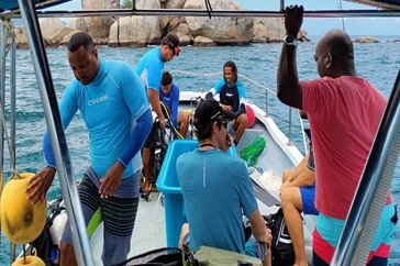 Even though diving is often seen as an enjoyable activity, it also comes with risks and challenges. Strong currents, deep dives, limited visibility, and working in remote islands can make each mission demanding. Because of this, safety is always the top priority. All dives are conducted following approved procedures, with full Personal Protective Equipment (PPE), proper dive planning, and constant communication between the boat crew and the divers. Emergency oxygen, first aid kits, and safety equipment are always ready in case they are needed.